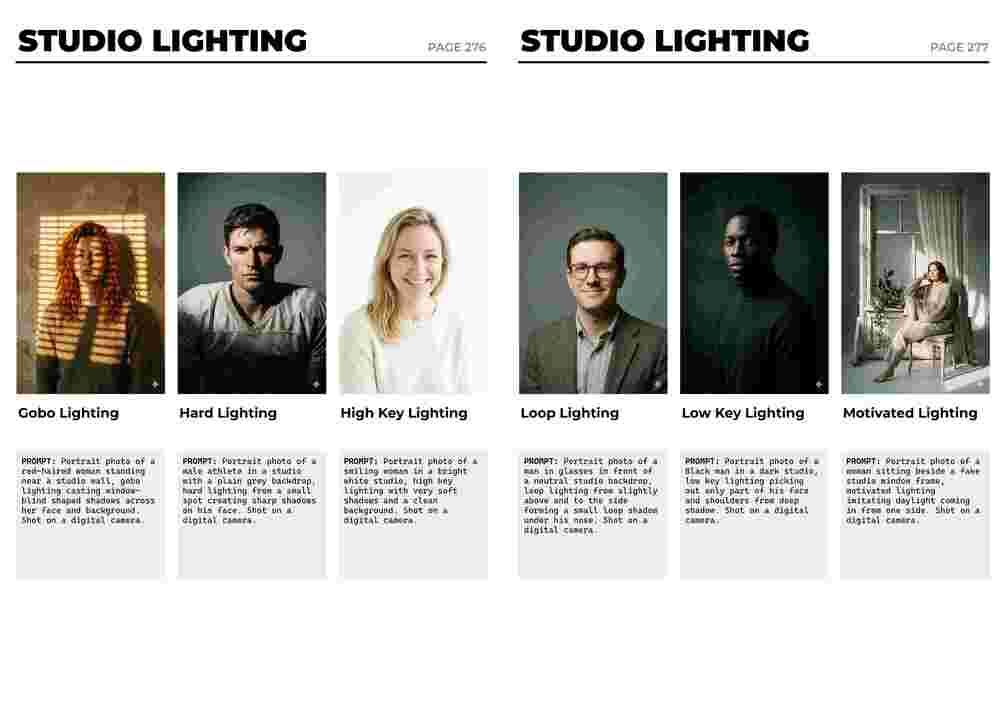 - Lighting & Atmosphere: Master studio setups (Rembrandt, Split, Volumetric) and control the mood of every shot.