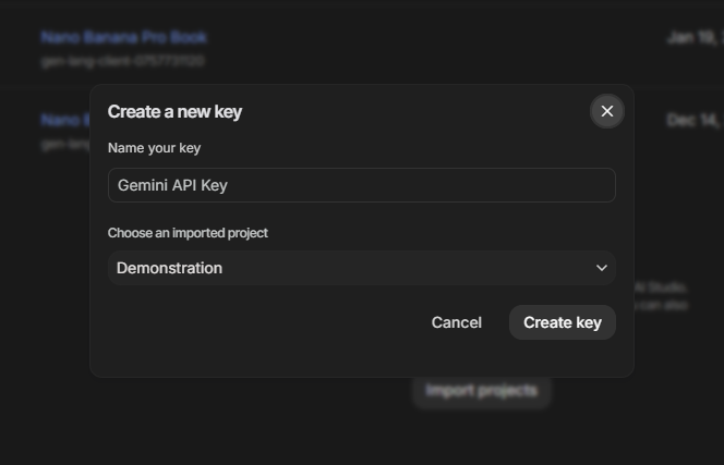 - You need to create an account with Google AI Studio, set up billing (google normally gives users free credits to start with) and in API keys select Create API key, name it and add it to a project and save